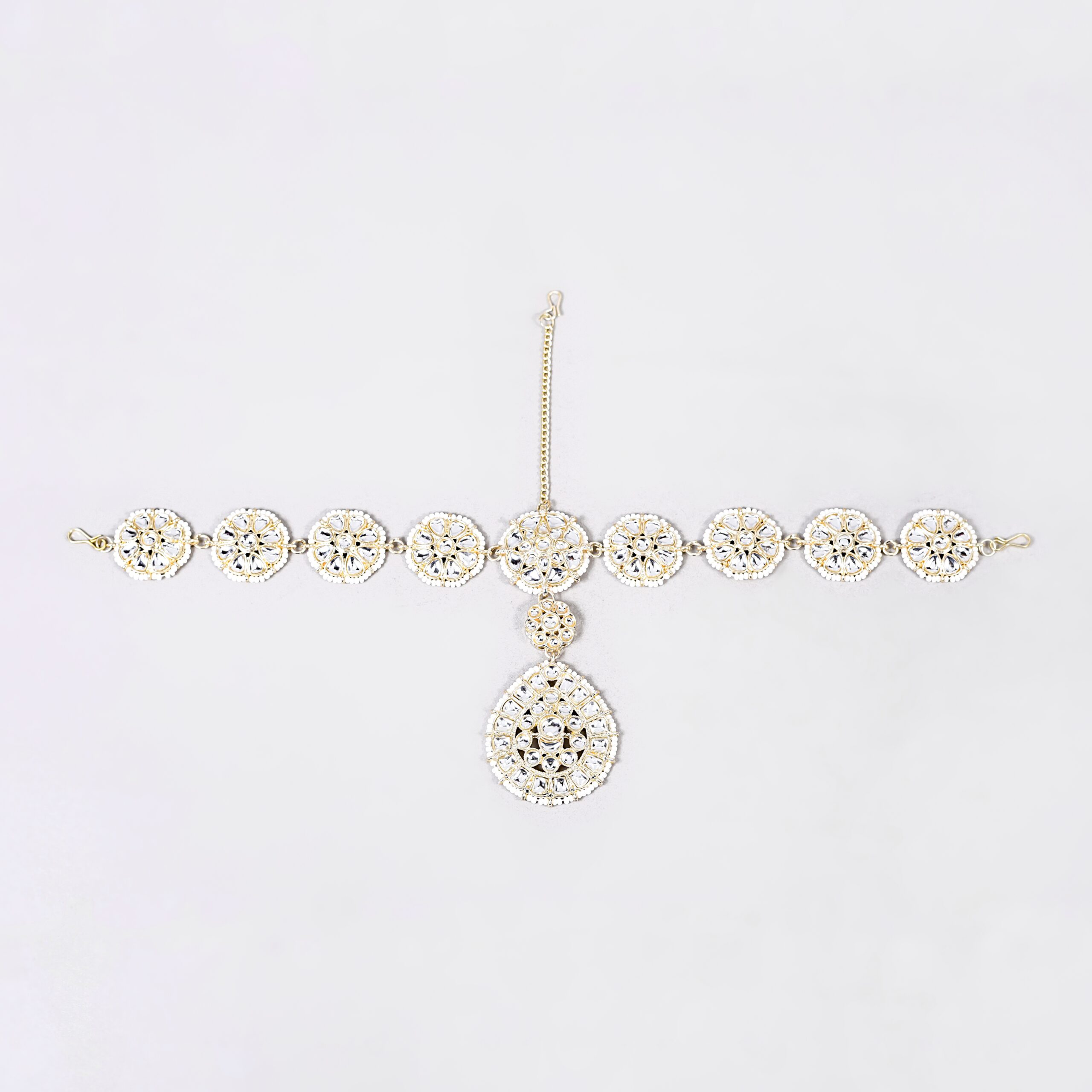 Floral Circle Kundan Mathapatti with Large Tikka – Golden Finish