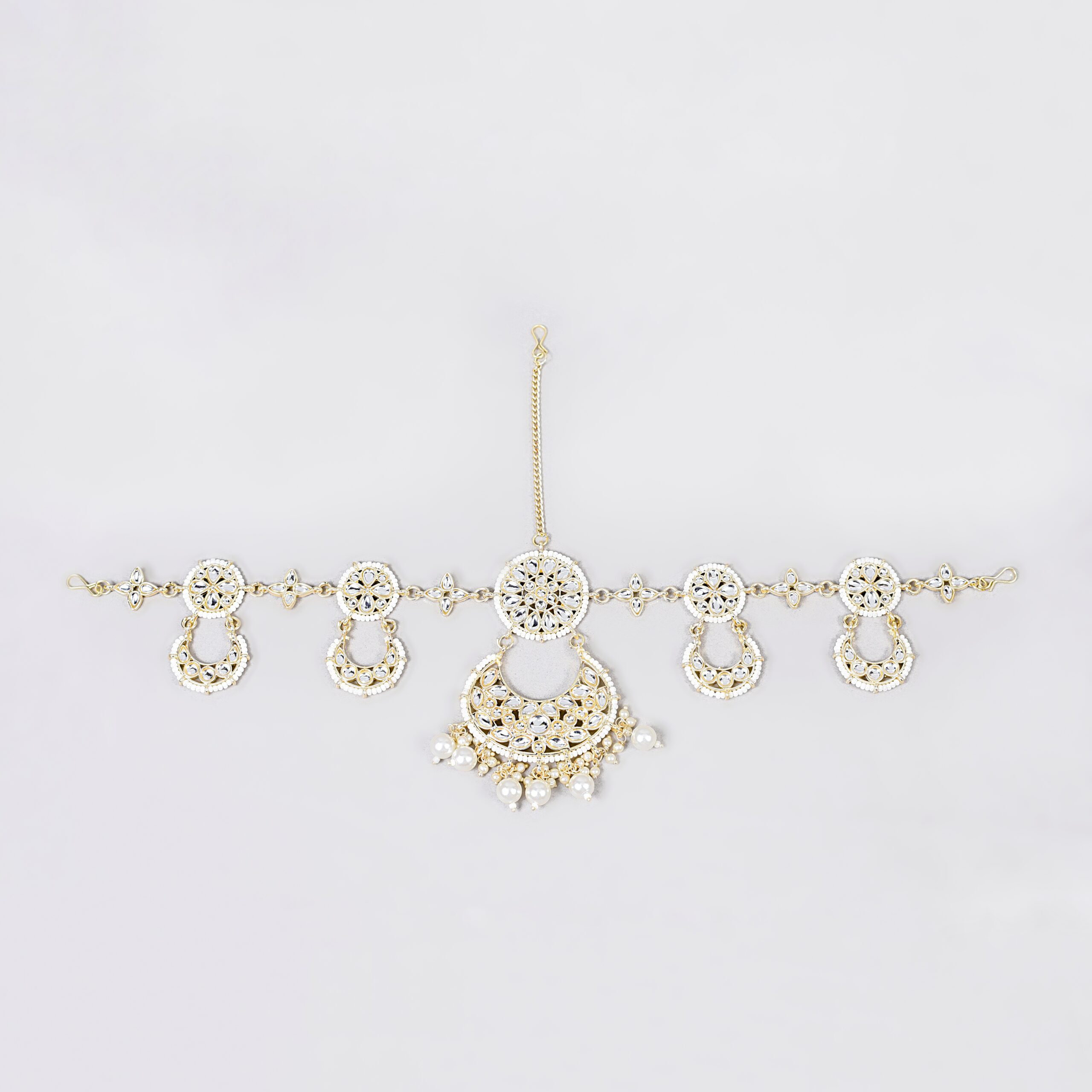 Pearl Drop Mathapatti with Intricate Floral Design – Golden Finish