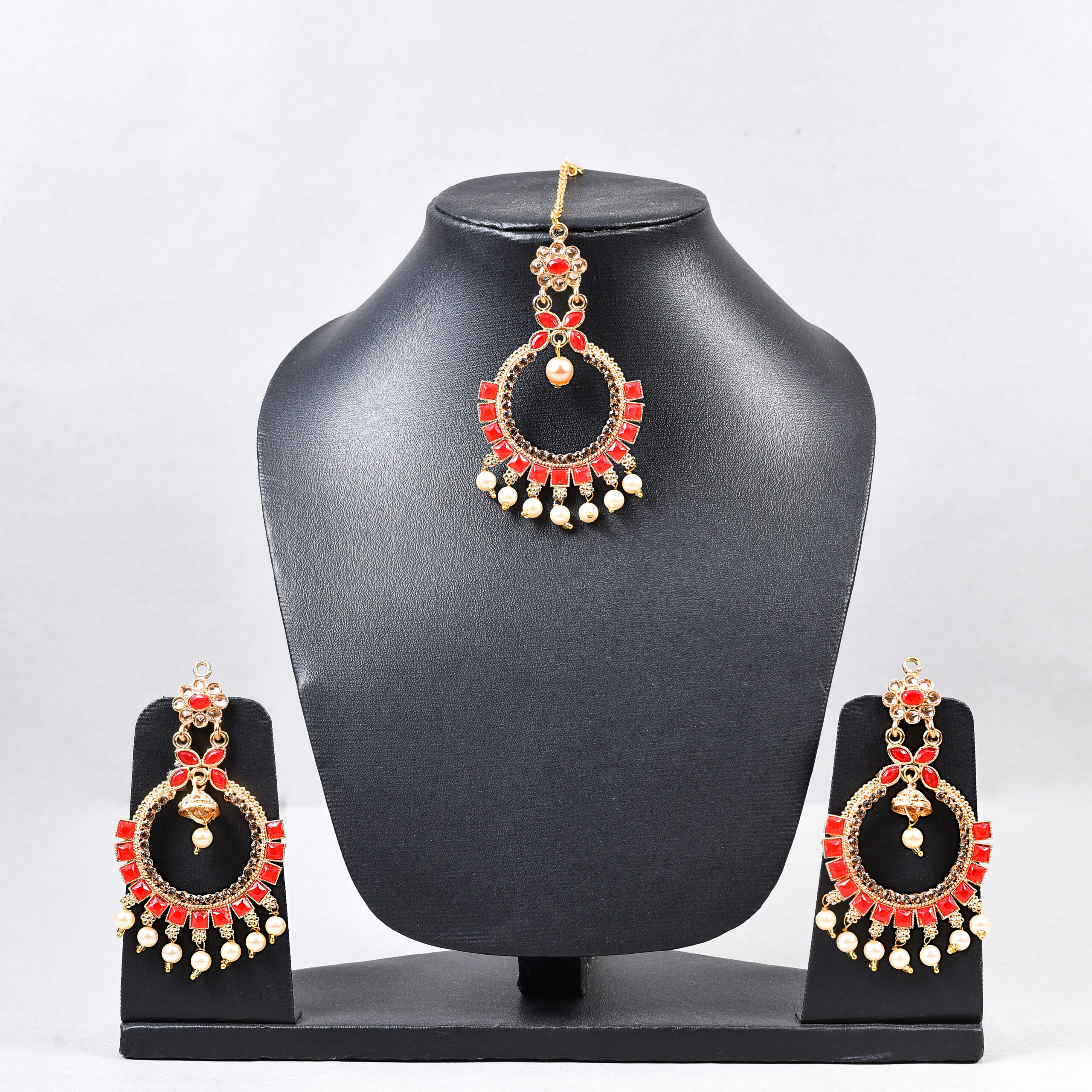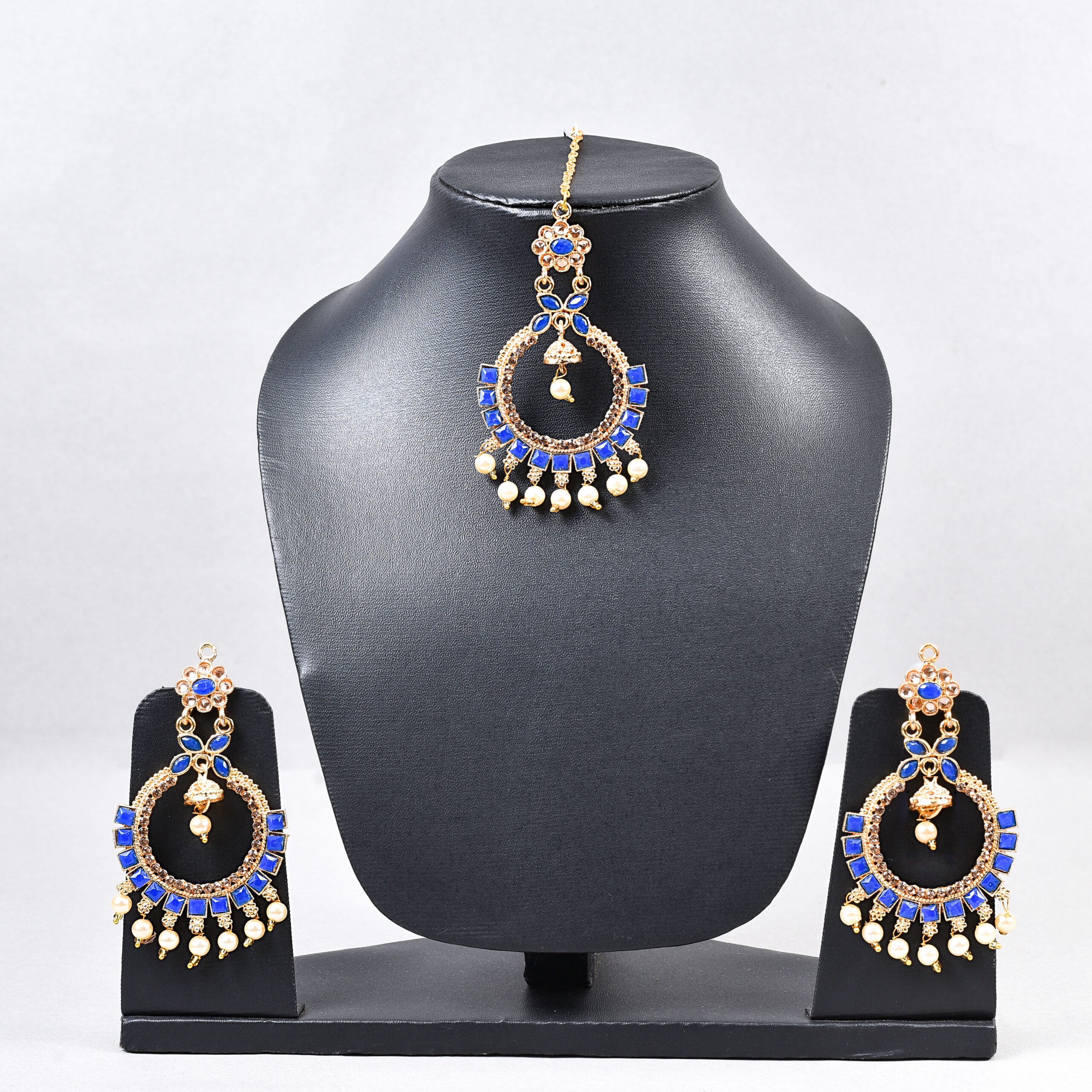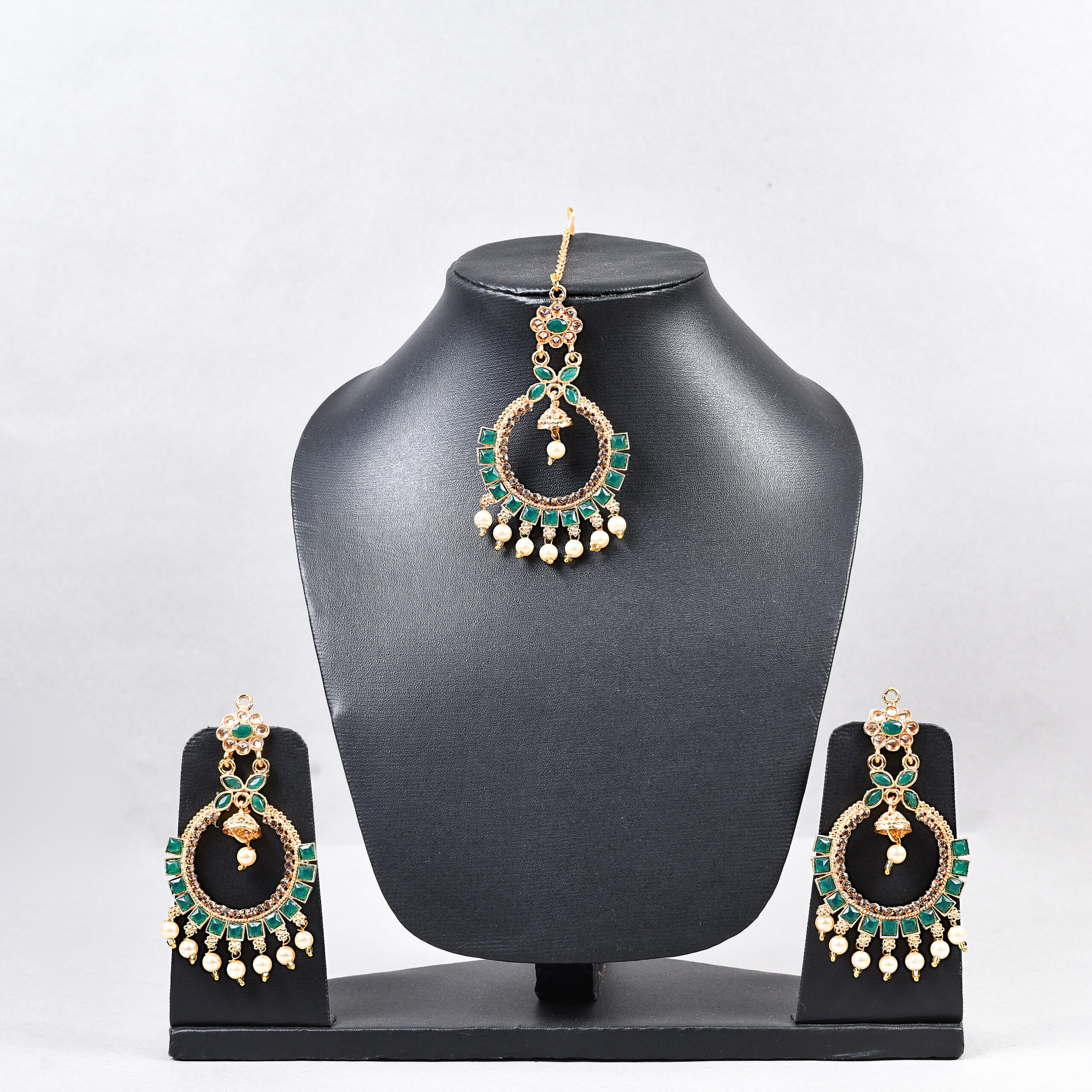 Each set includes a pair of statement chandbali earrings and a matching maang tikka, both designed to elevate your ethnic style.