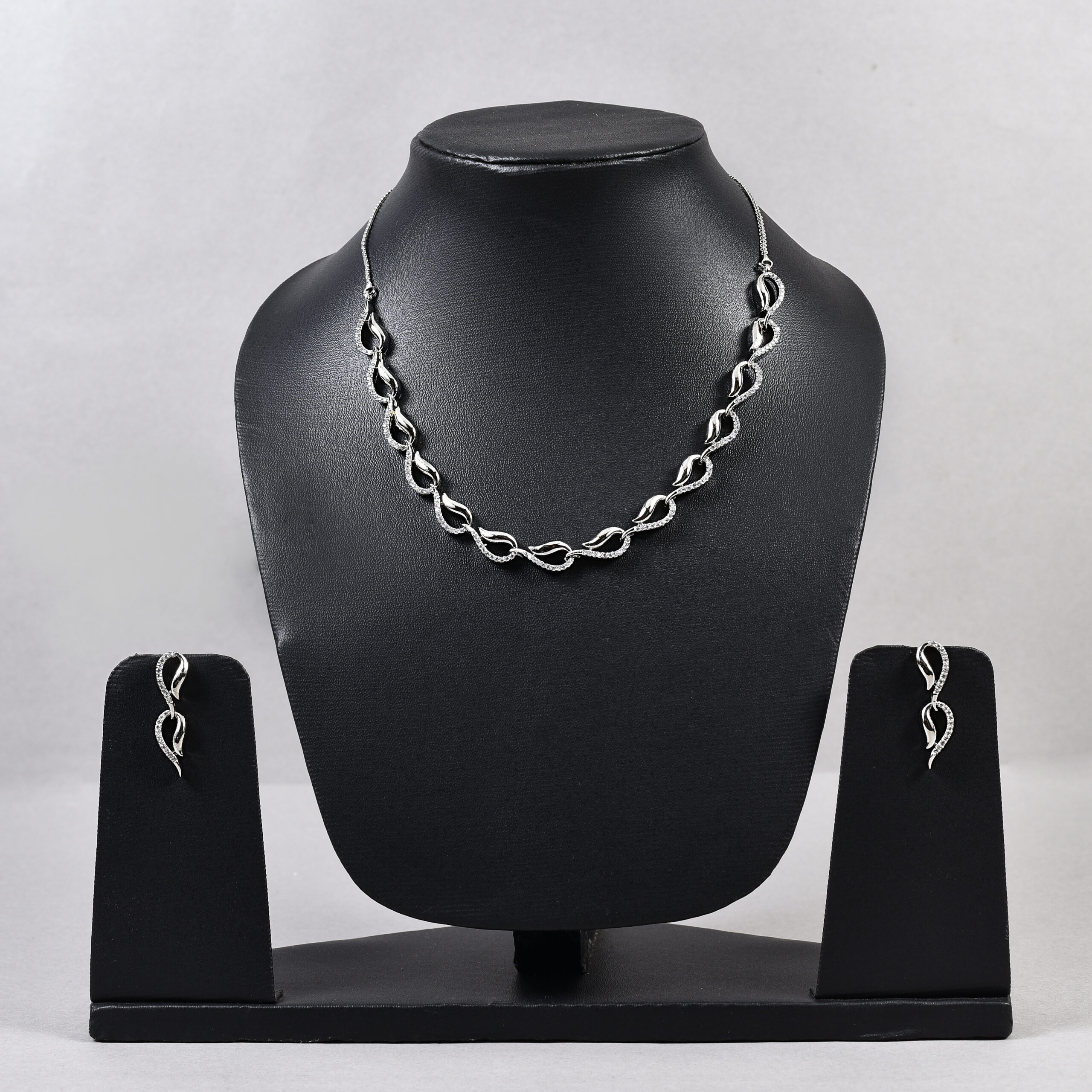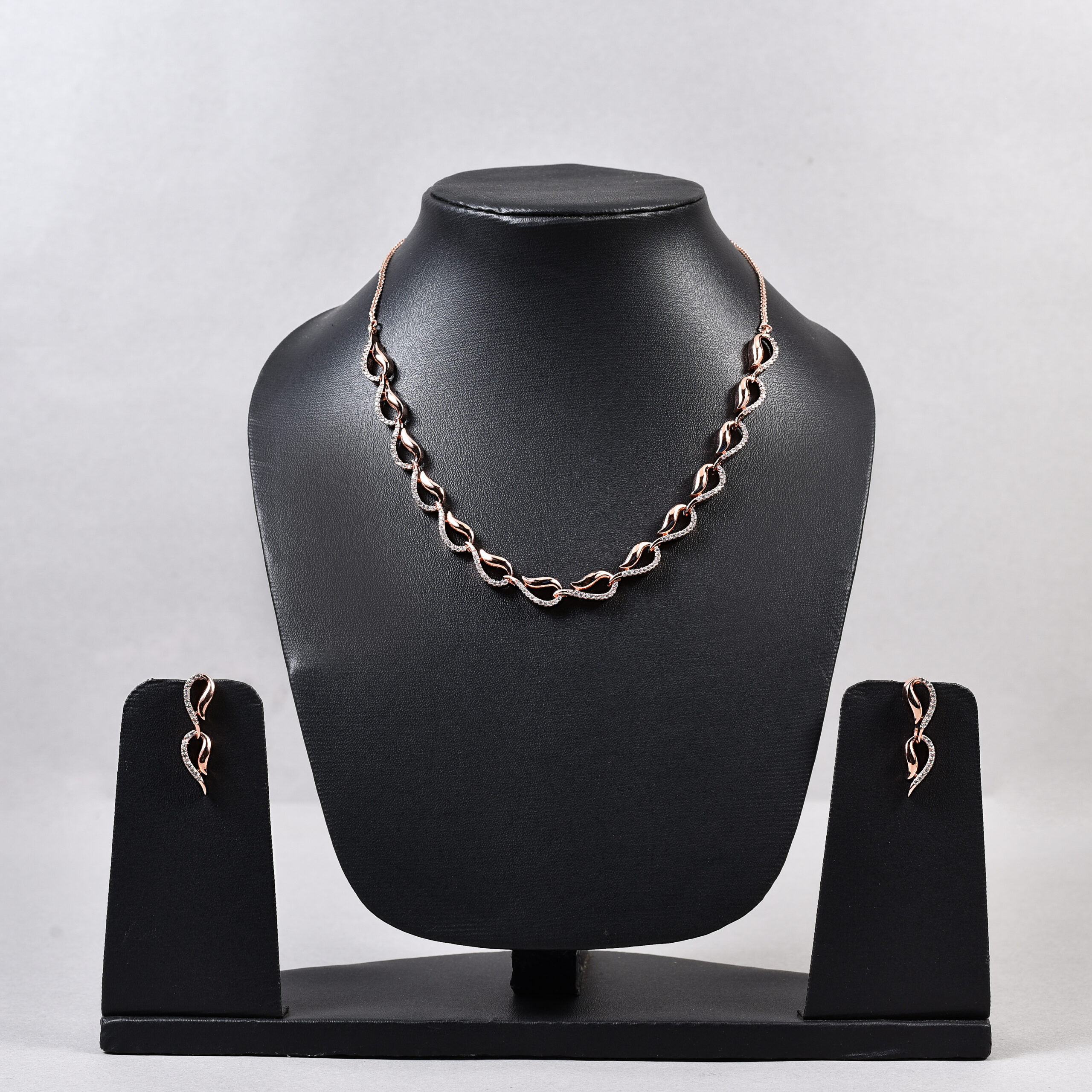 Twist Link American Diamond Necklace Set – Rose Gold & Silver Variants