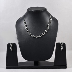 Stylish twist-link design necklace set with sparkling American Diamonds and matching earrings – available in Rose Gold and Silver finishes.